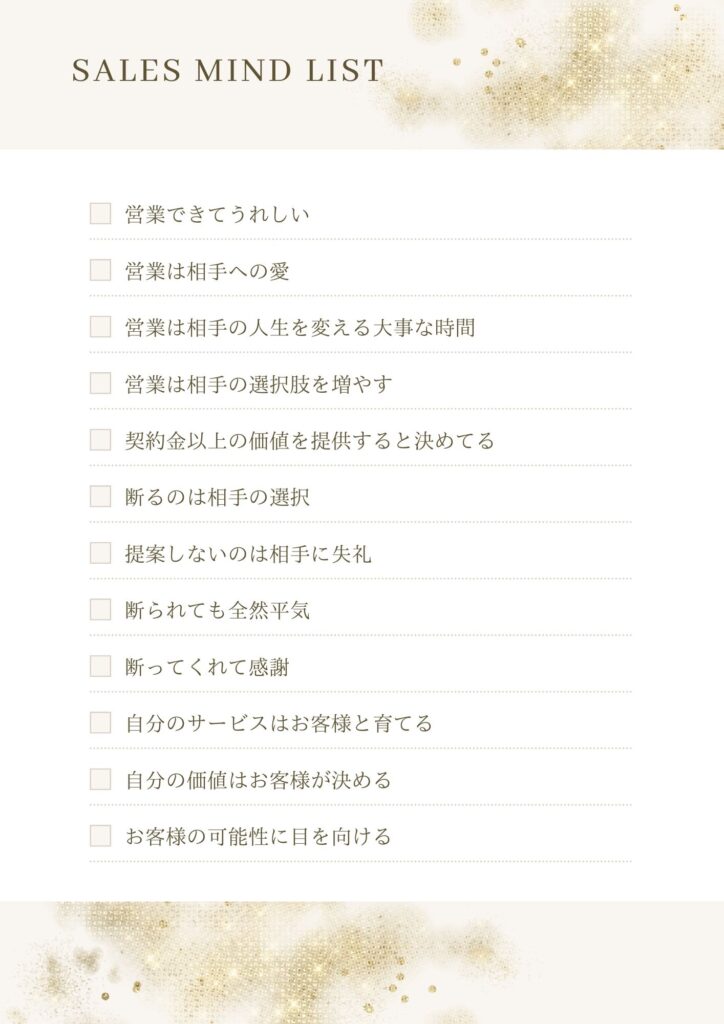 愛されセールス編 売れるマインドセットびびるマインドセット 感覚派さんの仕組みづくり相談会へ申し込む ▶︎ 以前 愛とお金が循環する♡契約につながるセールスセミナー 最近 目の前の人から体験セッションの予約をいただく方法 これも好きかも 高額商品でも契約いただける4つのポイント 2025年4月23日 「受けたい」と即決される11つの質問集 2025年4月23日 目の前の人から体験セッションの予約をいただく方法 2025年4月23日